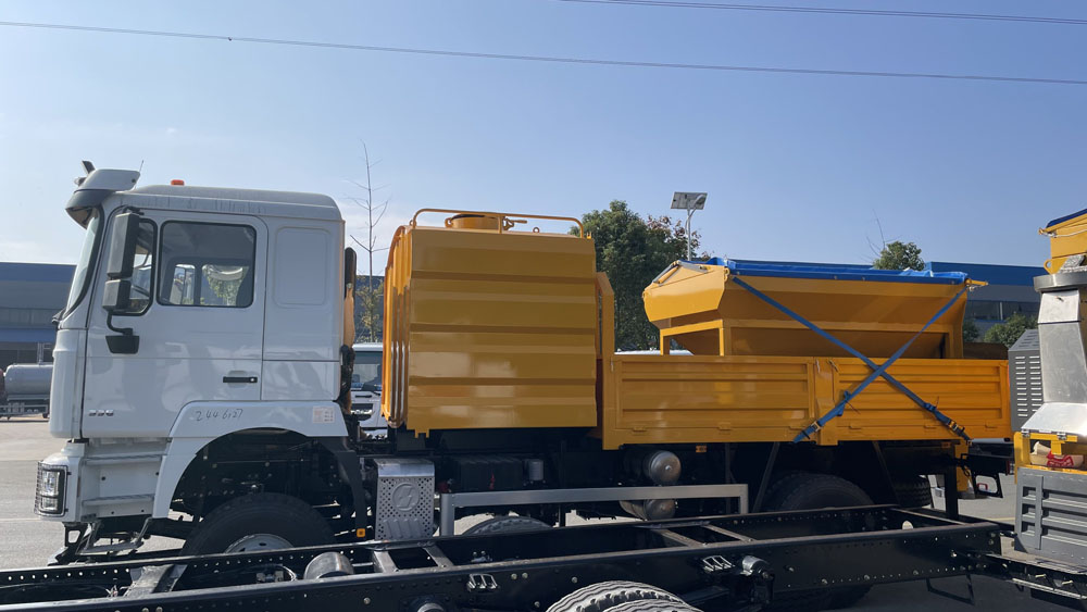一、底盤配置: 采用陜汽德龍SX1189LA1F1C車身,配置玉柴B6.2NS6B210發(fā)動機154/210馬力,國六排放標(biāo)準(zhǔn),軸距4700,5100,5300(mm),整備質(zhì)量8.8噸,額定載質(zhì)量9.305噸,五擋變速箱,帶動力轉(zhuǎn)向,帶原廠空調(diào),該車專用裝置為融雪劑撒布機,主要用于冬季道路除雪.該車僅在除雪作業(yè)時安裝除雪鏟和除雪滾刷.僅選用4000,4500,4700軸距(mm);車該車上黃牌,城區(qū)道路請注意限行標(biāo)識。